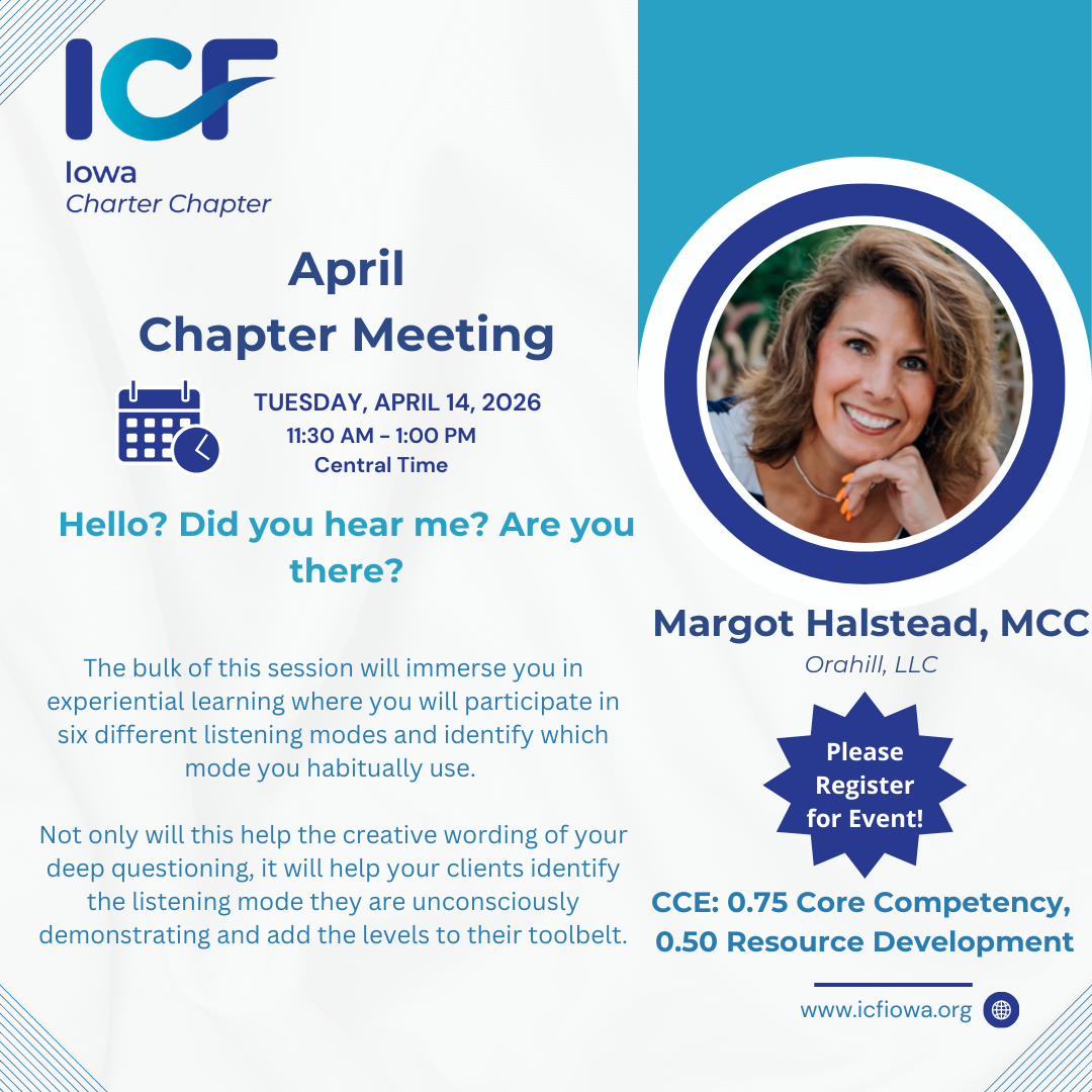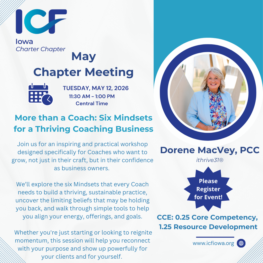 Do you have suggestions for a Real Talk topic? Are you interested in facilitating a Real Talk conversation? Reach out to any member of the ICF Iowa board!